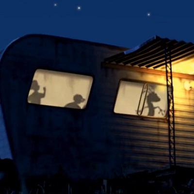 Mãe e filho no trailer |